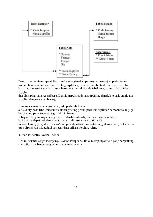 Namun dalam prakteknya dalam dunia industri bentuk normalisasi ini yang paling sering digunakan ada sekitar 5 bentuk. Latihan soal praktikum basis data horseracingsyndicates. Contoh data di atas merupakan data yang belum dinormalisasi, untuk selanjutnya tahap normalisasi 1nf. Apa yang dimaksud dengan dml? Kang somay 18 desember 2019 09 06. Definisi normalisasi normalisasi adalah suatu teknik untuk memperbaiki struktur tabel dengan ketergantungan fungsional(kf) dan primary key. Pengembangan basis data yang sesuai dengan definisi basis data seperti di muka dapat menghindarkan. Konsep normalisasi dan anomali tabel pengantar 11.1. Normalisasi tabel merupakan sebuah teknik dalam logical desain sebuah basis data relasional yang mengelompokkan atribut dari suatu relasi sehingga membentuk struktur relasi yang baik (tanpa redudansi). Seberapa pentingnya penggunaan normalisasi pada basis data ? Perintah2 untuk manipulasi data pada basisdata,misalnya perintah untuk memilih data (query),menyisipkan,mengubah dan meghapus data dalam basisdata. Pertanyaan tentang perancangan basis data. Tujuan normalisasi database adalah untuk menghilangkan dan mengurangi redudansi data dan tujuan yang kedua.