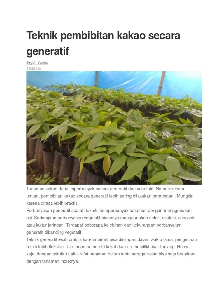 Tjahjo, a.a., baharuddin, & asrul, l. Laporan tugas akhir ini disusun sebagai salah satu persyaratan untuk menyelesaikan studi pada jurusan budidaya tanaman perkebunan politeknik. Teknik pembibitan kakao yang baik merupakan salah satu aspek yang penting dalam budidaya kakao, dengantujuan untuk dapat menghasilkan. Pembibitan kakao melalui stek dilakukan dengan cara memotong pucuk atau batang yang masih muda kemudian ditanam pada media tanam (gambar. Contoh daun dikeringkan dengan oven pada.